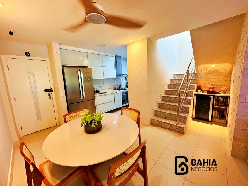 No primeiro pavimento a unidade possui cozinha com área de serviço integrada, sala e suíte principal com closet, ja no piso superior possui mais um quarto, uma sala intima que pode ser revertida em dormitorio , um banheiro social e área externa com piscina e espaço gourmet.